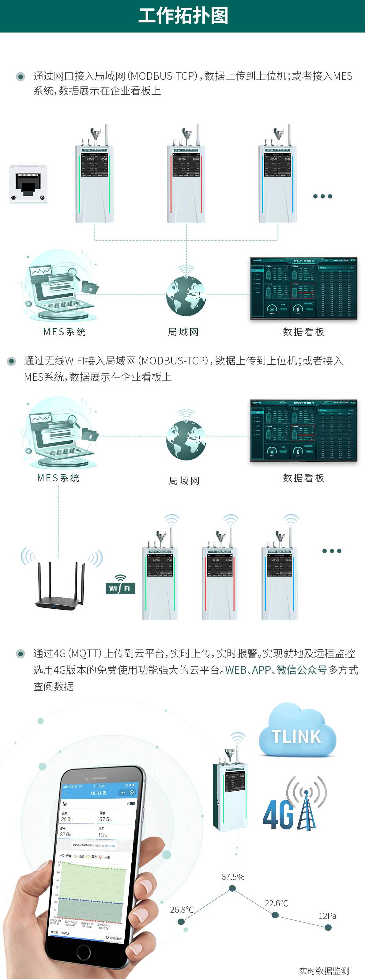 通訊系統(tǒng)配置:根據(jù)現(xiàn)場條件靈活選擇通訊方式。對于新建潔凈室,推薦采用RJ45有線網(wǎng)絡(luò)連接,保證數(shù)據(jù)傳輸?shù)姆€(wěn)定性;對于改造項(xiàng)目,可采用4G/WIFI無線傳輸方式,減少布線成本;對于大面積廣分布的多潔凈室,可采用LORA無線通訊,實(shí)現(xiàn)長距離低功耗的數(shù)據(jù)傳輸。