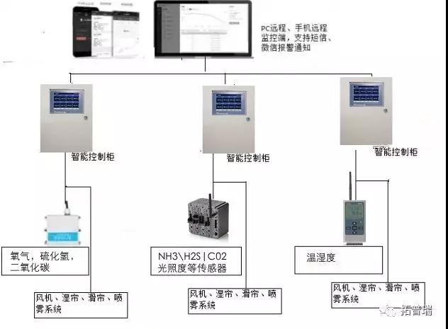 系統(tǒng)主要由物聯(lián)網(wǎng)遠程監(jiān)控平臺、自動化控制系統(tǒng)、數(shù)據(jù)采集系統(tǒng)、現(xiàn)場傳感器、PLC控制設備等部分組成。整套系統(tǒng)可以實現(xiàn)各類養(yǎng)殖場的智能化監(jiān)測,包括室內的溫度、濕度、二氧化碳濃度、氧氣濃度、光照強度、壓力等,同時可對室內 的溫度、濕度、有害氣體濃度、光照度進行自動控制,以營造一個適于養(yǎng)殖的舒適環(huán)境,提高養(yǎng)殖的經(jīng)濟效益。二:實行方案