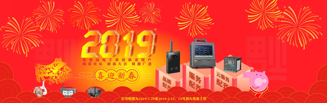 2019年拓普瑞春節(jié)假期安排如下:2019年1月29日(臘月二十四)至2019年2月12日(正月初八),2019年2月13日(正月初九)正式上班。放假期間產(chǎn)生的訂單將在假期后統(tǒng)一發(fā)出,敬請諒解!
