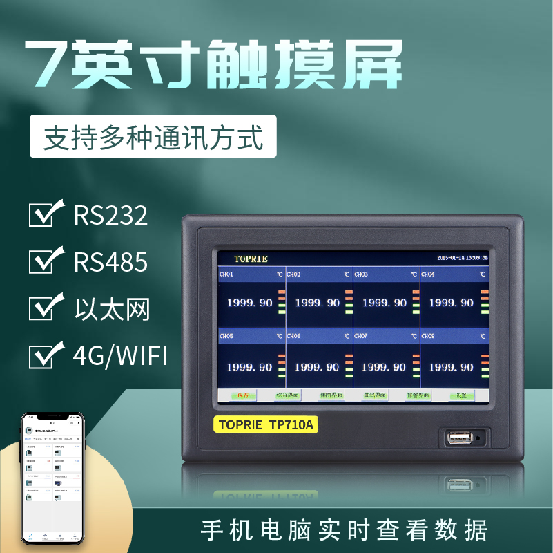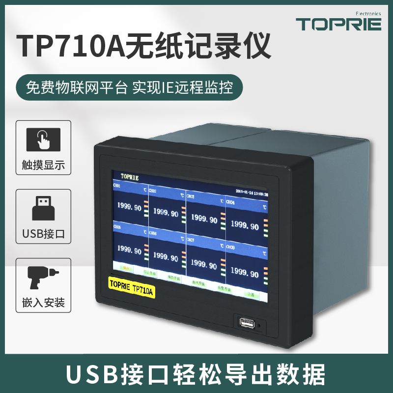 產(chǎn)品簡介:TP710A無紙記錄儀配免費(fèi)物聯(lián)網(wǎng)平臺(tái)實(shí)現(xiàn)IE遠(yuǎn)程監(jiān)控,手機(jī)查看數(shù)據(jù),微信報(bào)警功能,采用標(biāo)準(zhǔn)MODBUS通訊協(xié)議