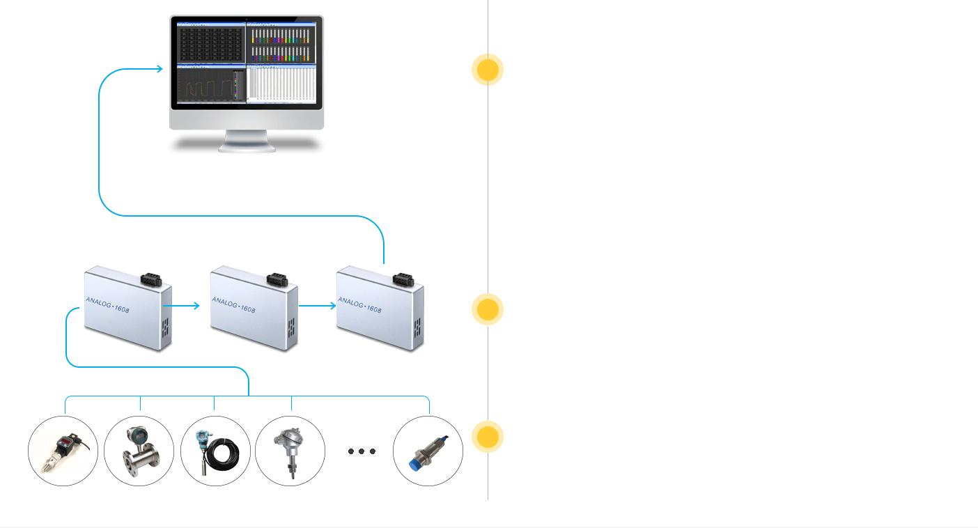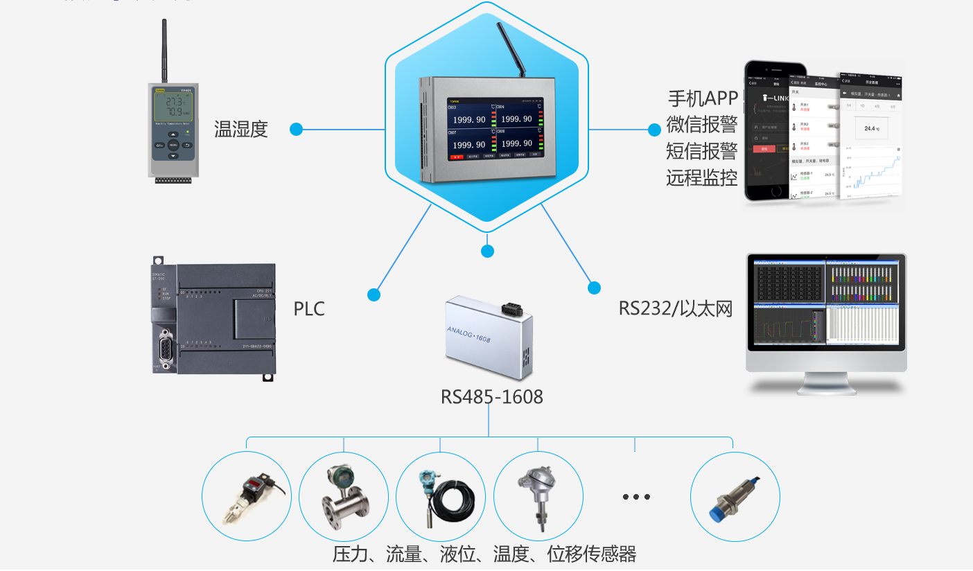 :采用工業(yè)級(jí)RS485-1608數(shù)據(jù)采集卡接口小巧便攜,可導(dǎo)軌安裝。專業(yè)采集電壓、電流、溫度、濕度、壓力、振動(dòng)、頻率、流量、液位等信息。