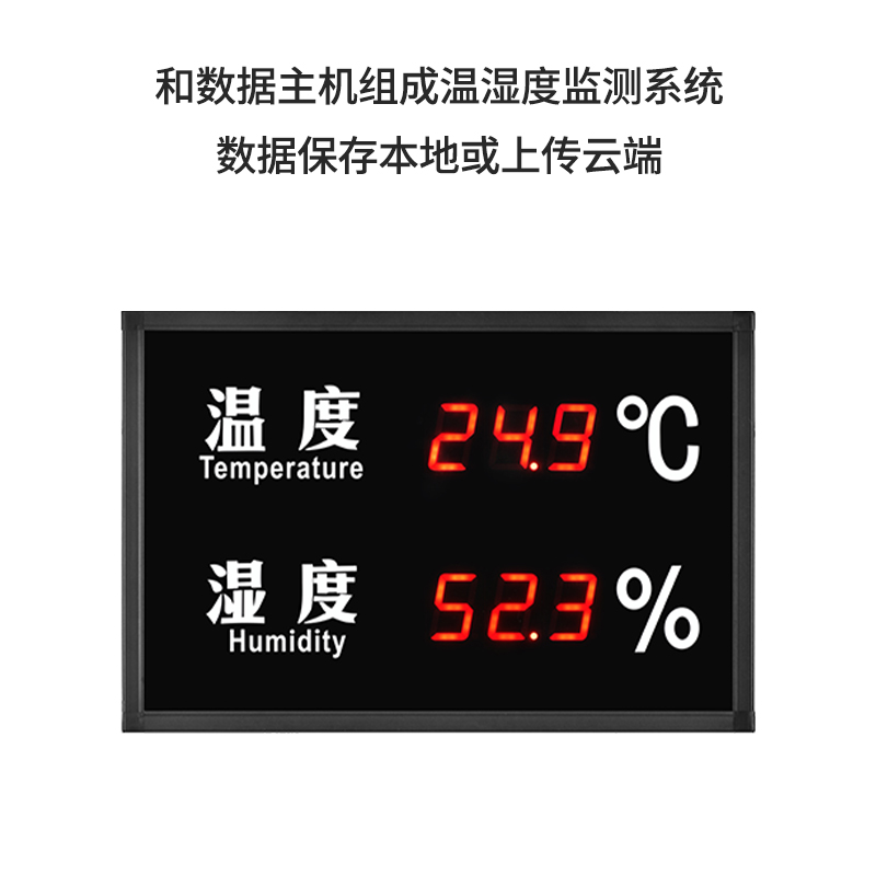 TP405溫濕度看板能保存數(shù)據和導出數(shù)據、能無線上傳云平臺,可以有線或無線聯(lián)網,上傳本地和云端統(tǒng)一監(jiān)測。LED顯示器,高達50米的可視距離.外置高精度溫濕度傳感器,通訊線最長可接60米.