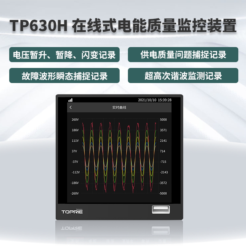 產(chǎn)品簡(jiǎn)介:TP630H在線式電能質(zhì)量監(jiān)控裝置按國(guó)家標(biāo)準(zhǔn),集諧波分析、波形采樣、電壓暫降/暫升/中斷記錄、閃變監(jiān)測(cè)、電壓不平衡度監(jiān)測(cè)、 波形的瞬態(tài)捕捉、事件記錄、測(cè)量控制多功能為一體。