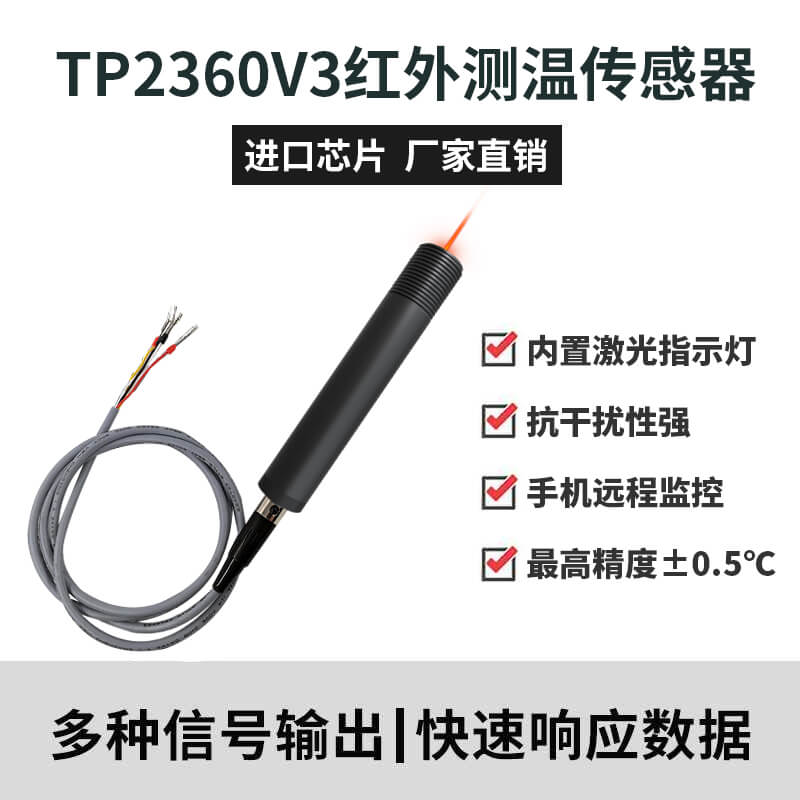 產品簡介:TP2360V3紅外溫度傳感器采用進口芯片,廠家直銷;測溫精度高且性能穩(wěn)定;多種信號輸出;快速響應溫度數據;可自調發(fā)射率;搭配智能采集設備可無線遠傳&遠程控溫