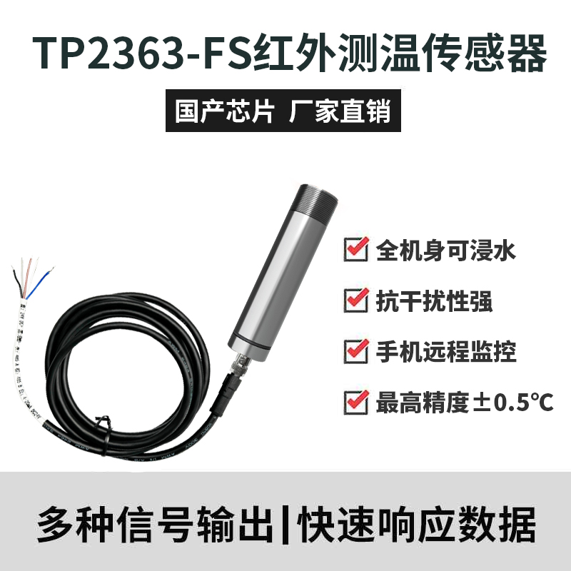 產(chǎn)品簡(jiǎn)介:TP2363-FS紅外溫度傳感器采用純國(guó)產(chǎn)智能芯片,廠家直銷;測(cè)溫精度高且性能穩(wěn)定;多種信號(hào)輸出;快速響應(yīng)溫度數(shù)據(jù);可自調(diào)發(fā)射率;搭配智能采集設(shè)備可無線遠(yuǎn)傳&遠(yuǎn)程控溫